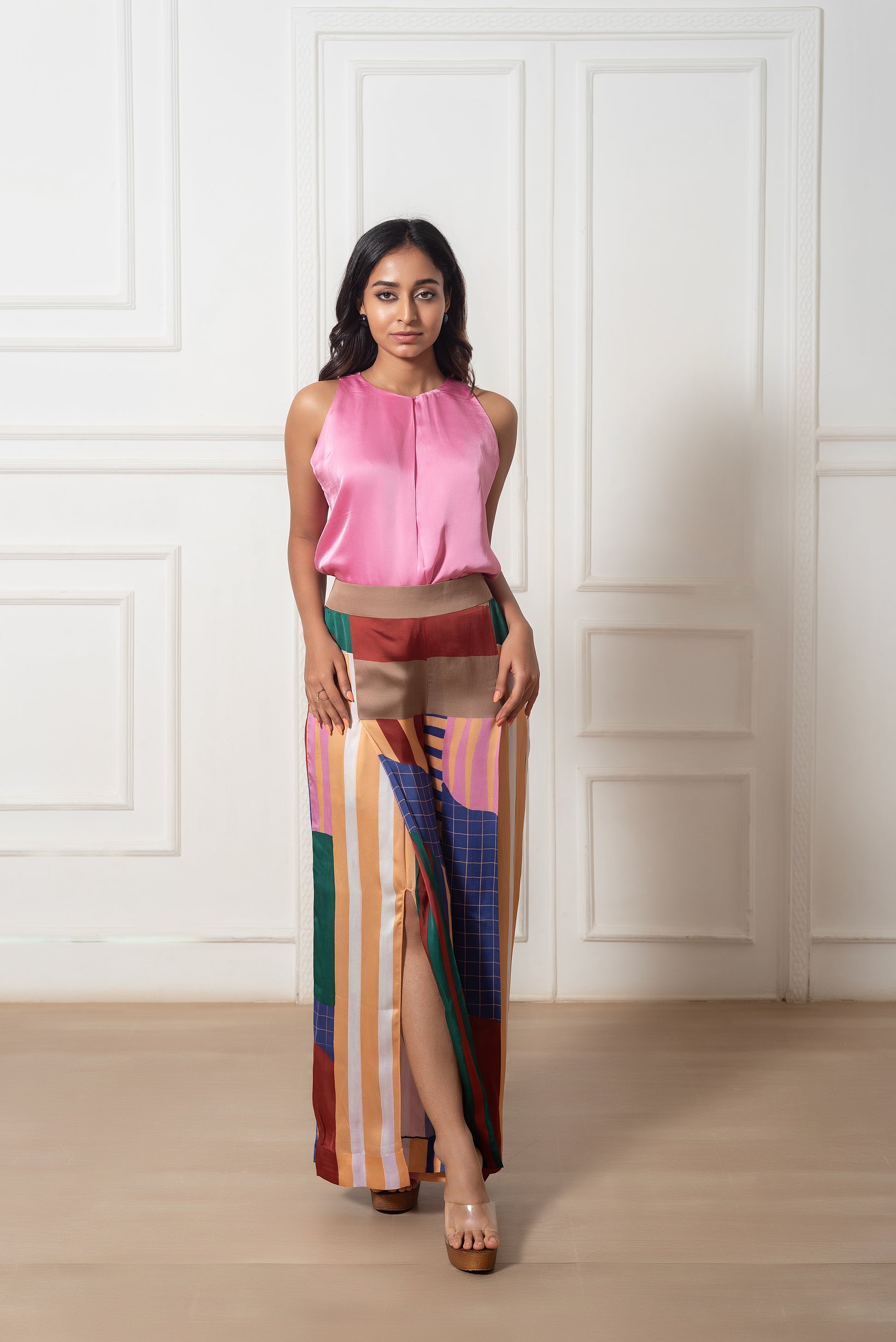 Discover effortless style with our Printed Slit Open Straight Fit Pants. Made with high-quality viscose satin, these pants offer a comfortable and luxurious feel. The colorful print adds a touch of vibrancy, while the straight fit and slit openings provide a flattering and modern look. Elevate your wardrobe with these statement pants.